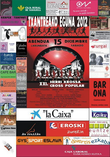 Inscripciones en: Akelarre Elkartea (tardes) - Auzotegi Kultur Exea (tardes) - Deportes Zariquiegui - Deportes Eslava (Villava) - Korapilo Zapategia (C/ Santesteban) del 4 al 14 de Diciembre: 9€, o en línea de salida 10€