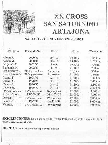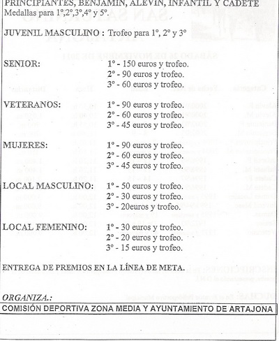 Inscripciones hasta 1 hora antes, en la linea de salida (Frontón)presentando el DNI.