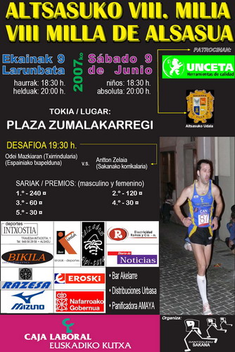 Lluvia de pruebas para este fin de semana, empezando el sábado, por la mañana con la I Carrera Popular del Agua, de Villava a Mendillorri, por la tarde tenemos la Milla de Alsasua, con desafío atleta-txirrindulari incluido e incluso para el que guste de ver correr a la élite se puede acercar a Oñate donde habrá "lluvia de estrellas" con las que participar en su carrera. Todo esto además de pruebas de pista en Basauri, Vitoria y Zaragoza.